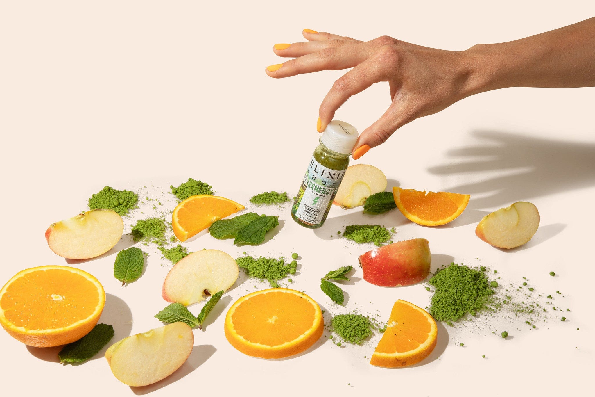 Japanese Matcha, Oranges, Apple Cider Vinegar, Mint.